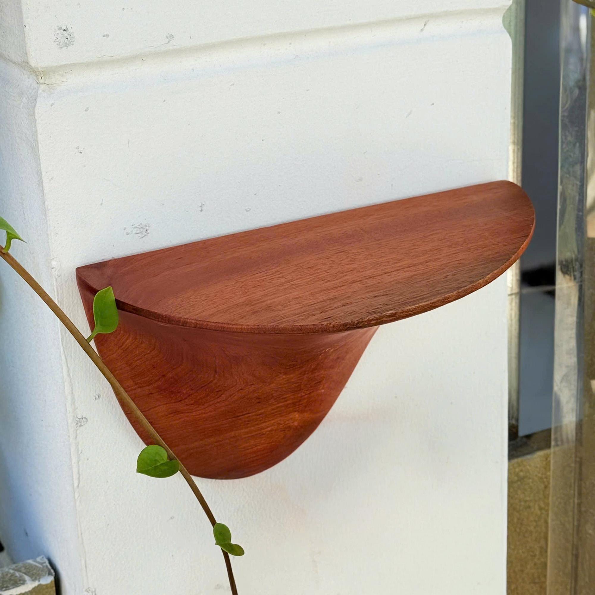 Bring half circle shelf the warmth of nature into your living space with this handcrafted solid wood wall shelf, carefully shaped from a single piece of natural wood. Inspired by organic forms found in nature, this sculptural shelf features soft curves, flowing edges that makes each piece truly one of a kind.