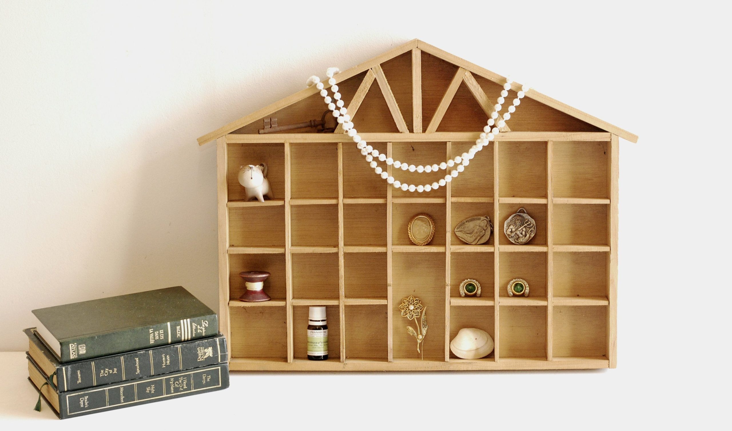 Vintage French Wood House Shelf: Miniature Display ,Shadow Box